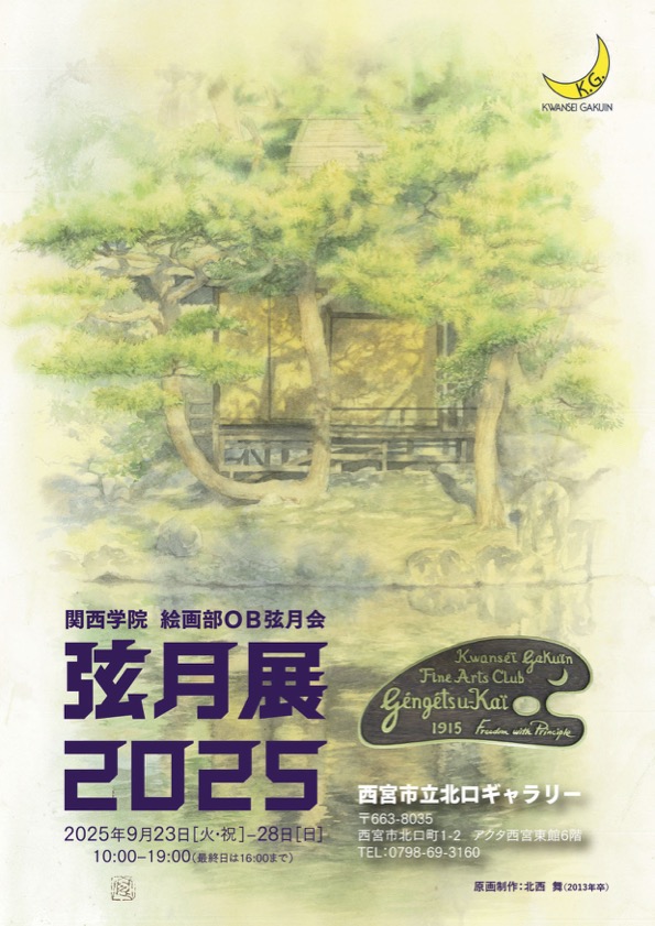 第13回目となる『弦月会展』が西宮市立北口ギャラリーにて開催されました。幅広い年代にわたる卒業生35名と、大学生部員5名の計40名が参加し、66点の作品展示になりました。会期中には350名の方にご来場者いただきました。